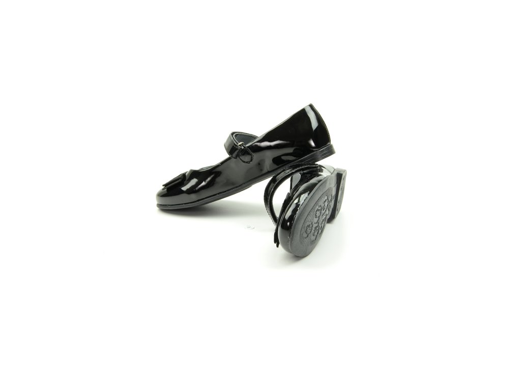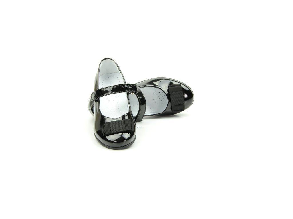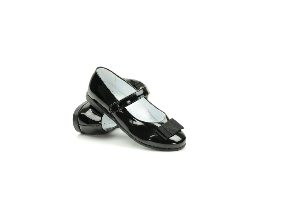 Dívčí černé syntetické baleríny od značky Kornecki. Zapínaní pomocí suchého zipu-nastavitelné. Protiskluzová gumová podrážka s pevnou patou a ozdobným detailem v přední části boty.