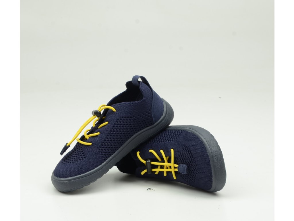 Tyto dětské barefoot tenisky v tmavě modré barvě jsou ideální volbou pro aktivní děti, které potřebují lehkou, flexibilní a pohodlnou obuv na každý den. Prodyšný textilní svršek zajišťuje optimální ventilaci, zatímco měkká a ohebná podešev podporuje přirozený pohyb chodidla.