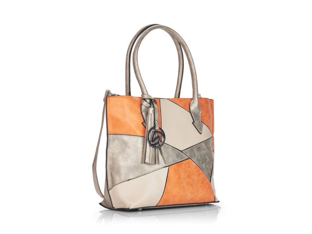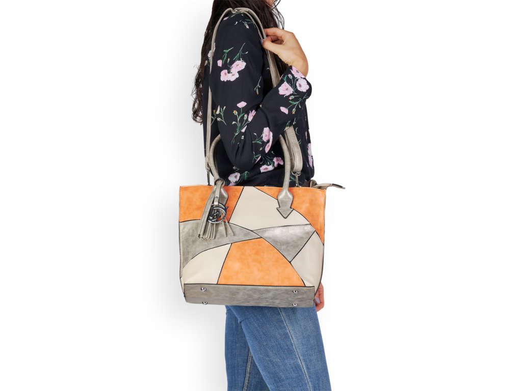 Tato dámská kabelka značky REMONTE (vyšší řada značky Rieker), je to, co chcete mít. Má nádherný svršek seskládaný z různých části, vzorů a kombinaci barev. Dalším ozdobným prvkem je třásňový přívěsek a kovové logo. Taška se uzavírá praktickým zipem, po jehož rozepnutí Vás mile překvapí krásná podšívka a několik kapes sloužící k uložení drobností. Má dvě uši a délkově nastavitelný popruh, který je zároveň odepínatelný, díky kterým ji můžete nosit jak v ruce, tak i přes rameno. Tento model se určitě stane Vašim ideálním společníkem po celý den.