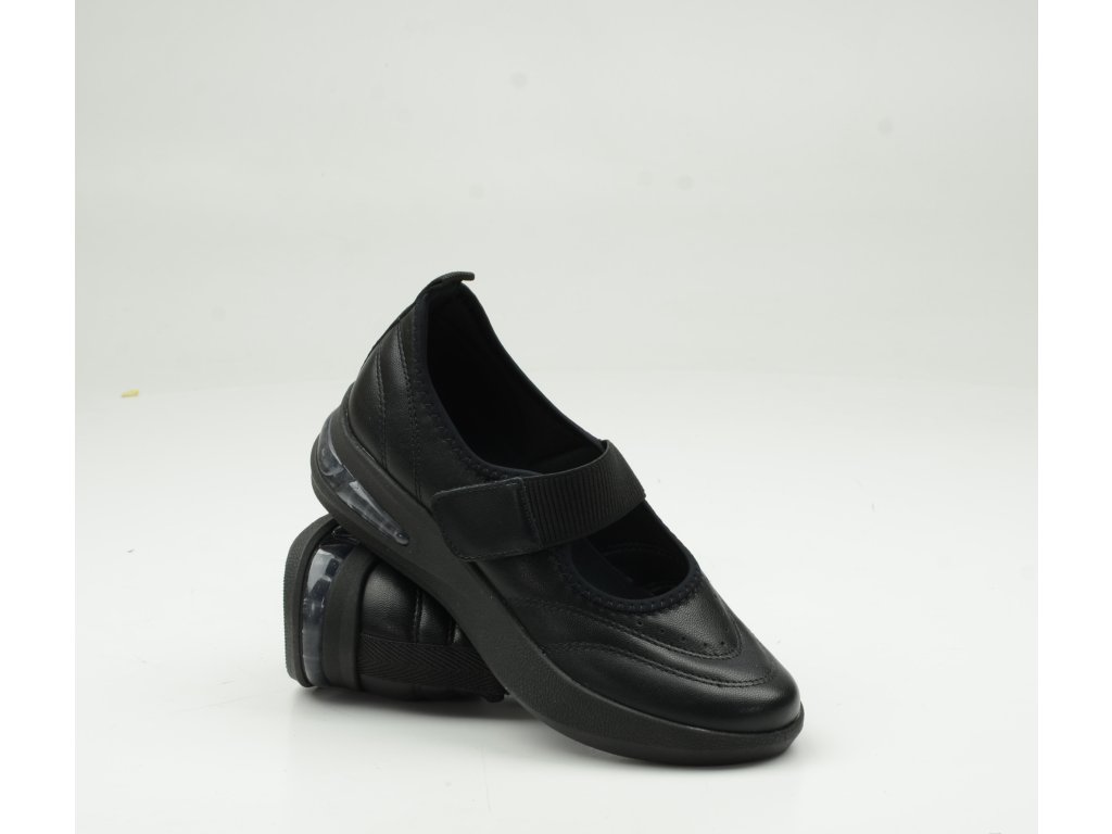 Model je vybaven praktickým páskem přes nárt, který zajišťuje stabilitu a jistotu při chůzi. Měkký svršek se dokonale přizpůsobí tvaru chodidla a poskytuje maximální komfort i při celodenním nošení. Lehká podešev s tlumicí funkcí navíc pomáhá snižovat nárazy při došlapu, což oceníte zejména při delším stání nebo chůzi.