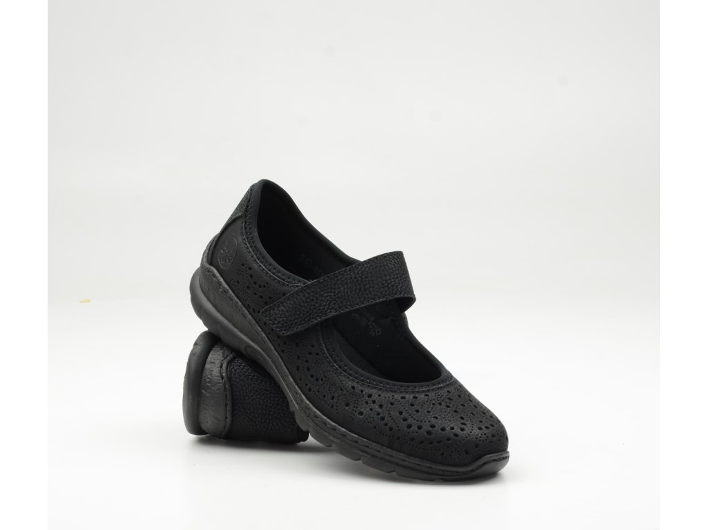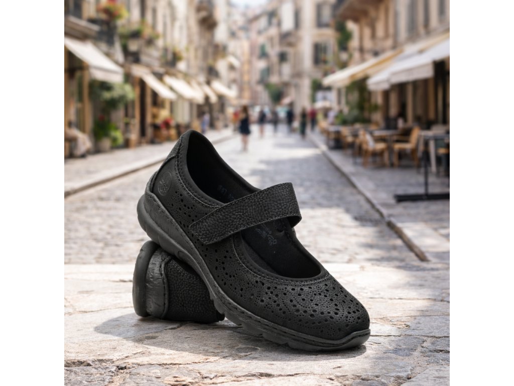 Dámské baleríny Rieker N4299-00 jsou perfektní volbou pro ženy, které hledají pohodlnou a praktickou obuv pro každodenní nošení. Tento model v elegantní černé barvě skvěle doplní pracovní outfit, městský styl i volnočasové oblečení.