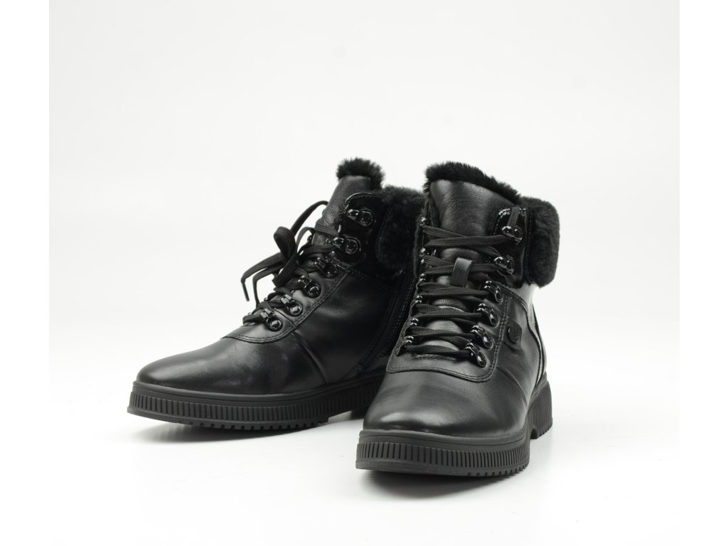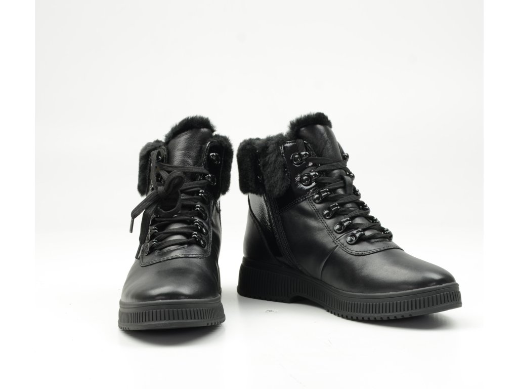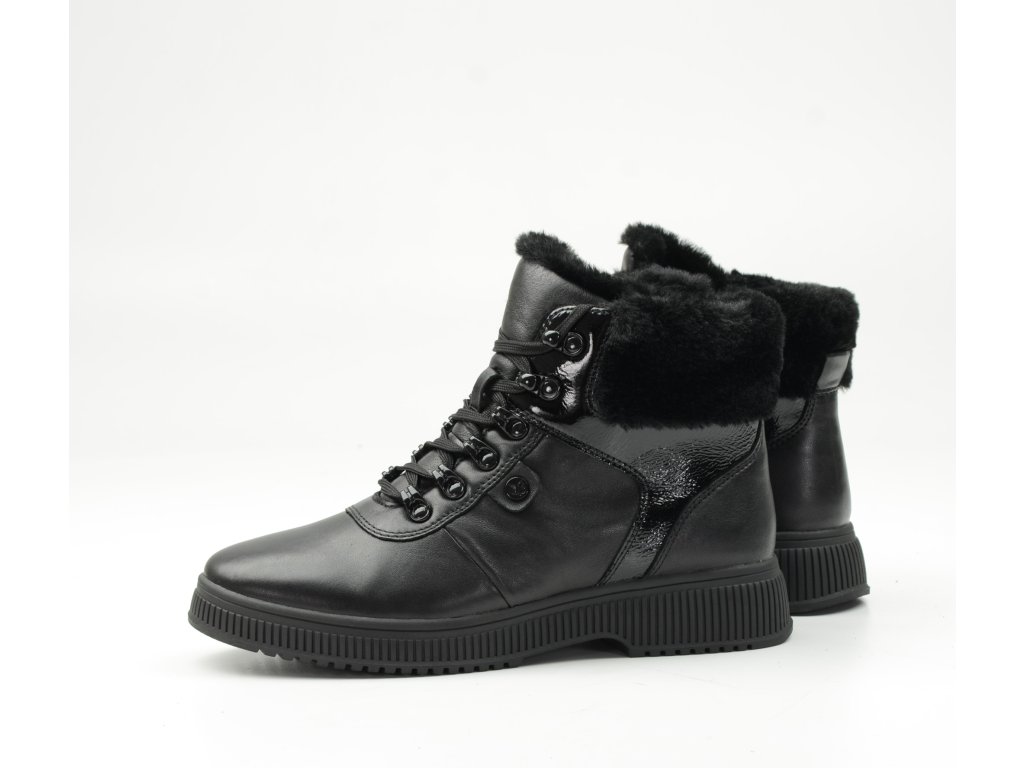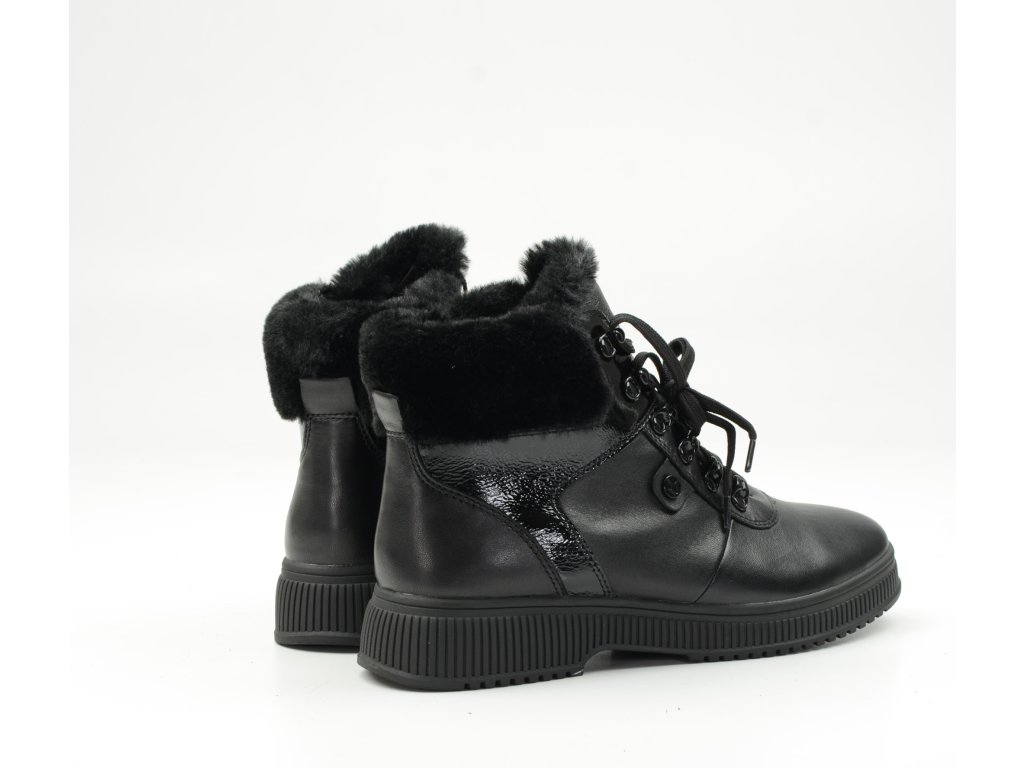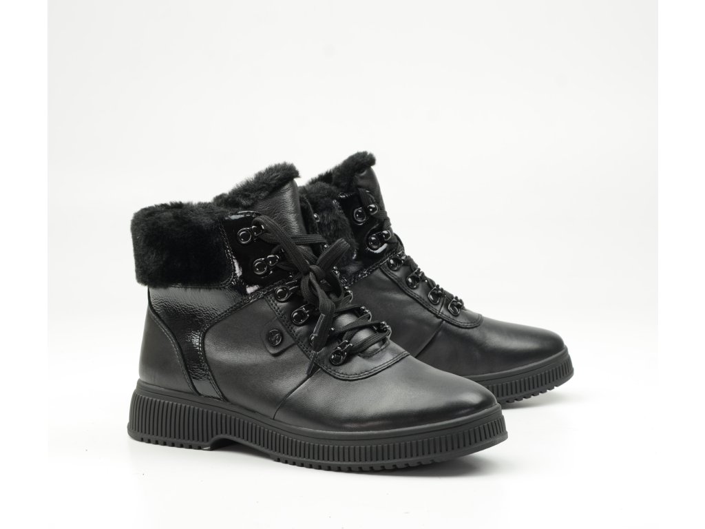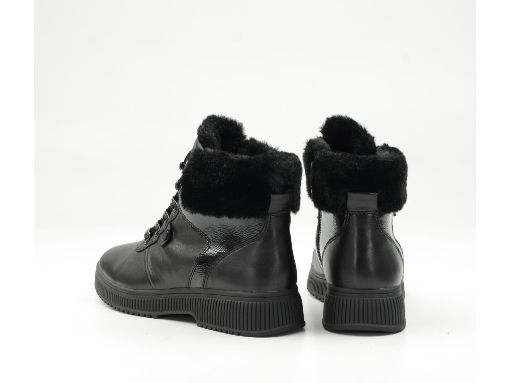 Měkká podšívka s hřejivým kožíškem udrží nohy v teple, zatímco flexibilní podešev se postará o jistý krok i na kluzkém povrchu. Praktické šněrování zajišťuje dokonalé přizpůsobení noze a decentní lesk dodává obuvi ženský půvab.