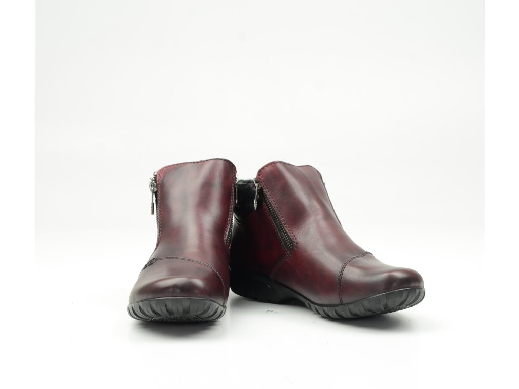 Dámské polokozačky Rieker L4655-35 v elegantním vínovém odstínu nabízí perfektní spojení pohodlí, stylu a funkčnosti. Vyrobené z kvalitní syntetické kůže s jemným leskem, doplněné o decentní prošití a pružné vsadky po stranách pro snadné obouvání.