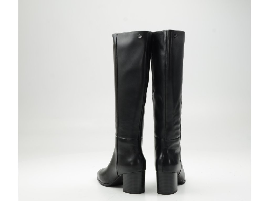 Elegantní dámské kozačky Caprice 9-9-25502-45 022 black nappa v černé hladké kůži jsou ideální volbou pro podzim i zimu. Díky nadčasovému designu je snadno sladíte jak s kalhotami, tak se šaty. Obuv je vyrobena z kvalitní přírodní kůže, která se přizpůsobí chodidlu a poskytuje celodenní pohodlí. Praktický postranní zip usnadňuje obouvání a stabilní podpatek dodává jistotu při chůzi. Stélka s technologií Caprice OnAir zajišťuje příjemné odvětrávání a měkký došlap.