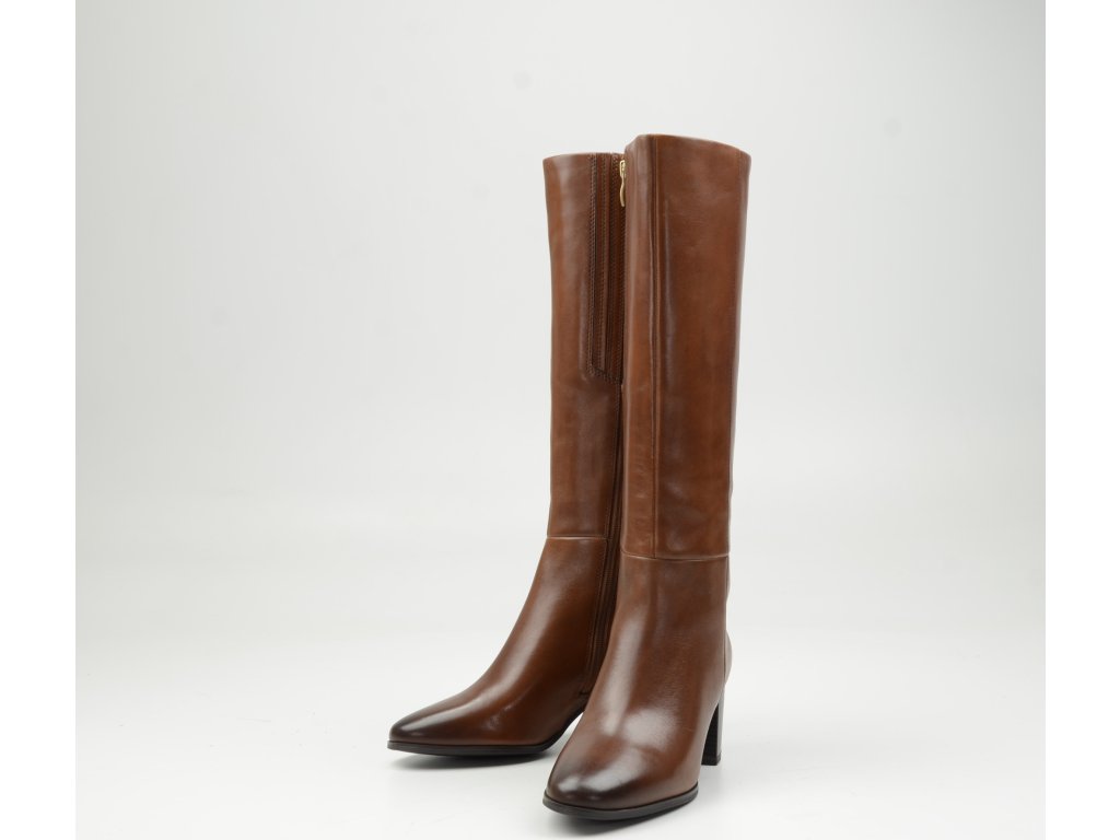 Koňakové kozačky z pravé kůže s technologií OnAir – pohodlí a styl pro každý den.