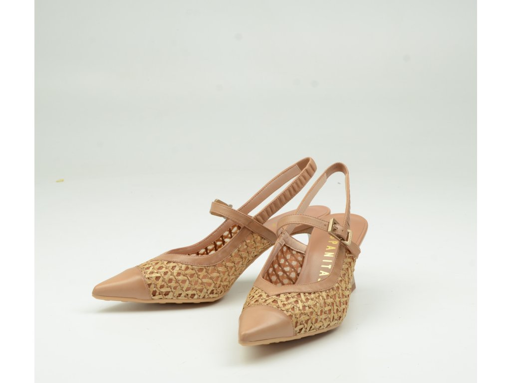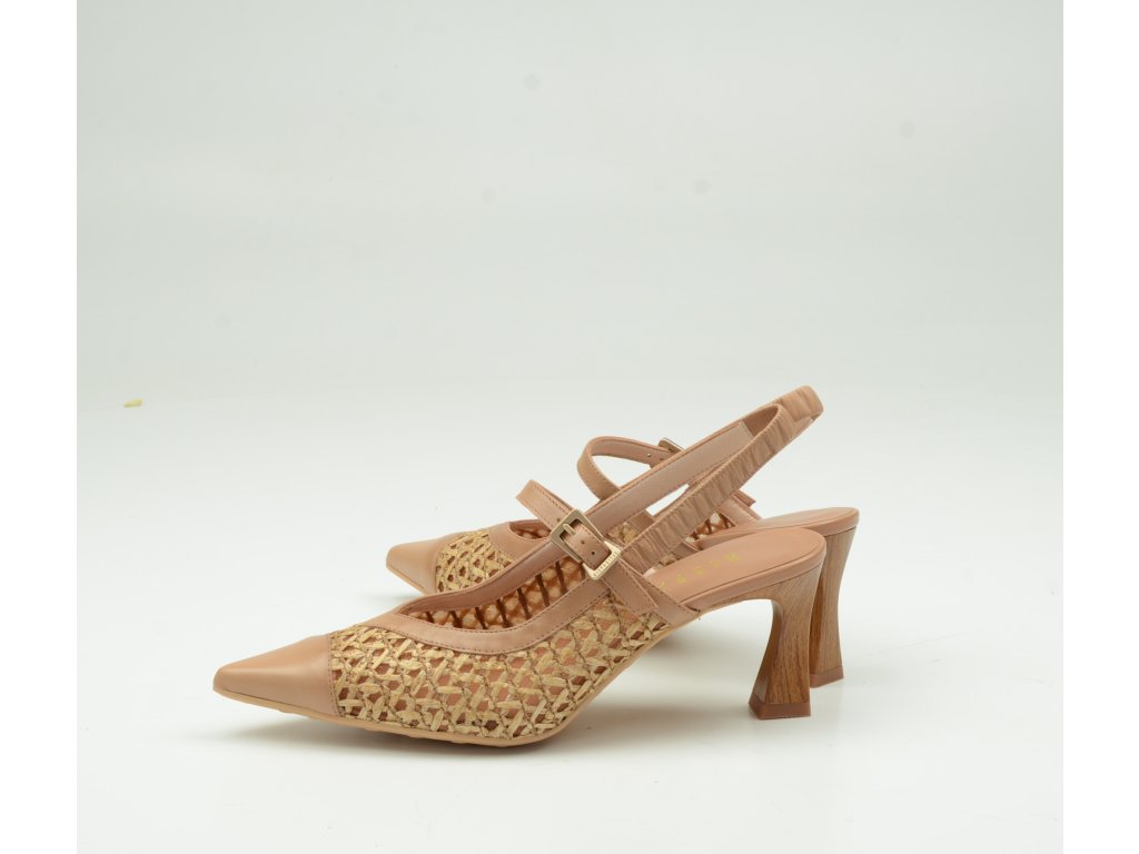 Kombinace jemného odstínu almond (mandlová) s hladkými koženými detaily působí velmi sofistikovaně a snadno se kombinuje s šaty, sukněmi i elegantními kalhotami. Pásek přes nárt a patu zajišťuje stabilitu při chůzi a zároveň podtrhuje ženský charakter obuvi.