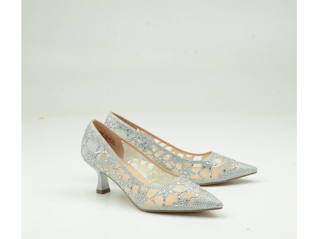 Stříbrné lodičky Laura Vita s třpytivým zdobením – elegance, která rozzáří každý outfit.