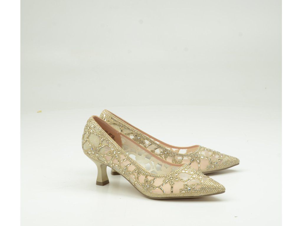 Zlaté lodičky Laura Vita s třpytivým zdobením – elegance, která okamžitě zaujme.