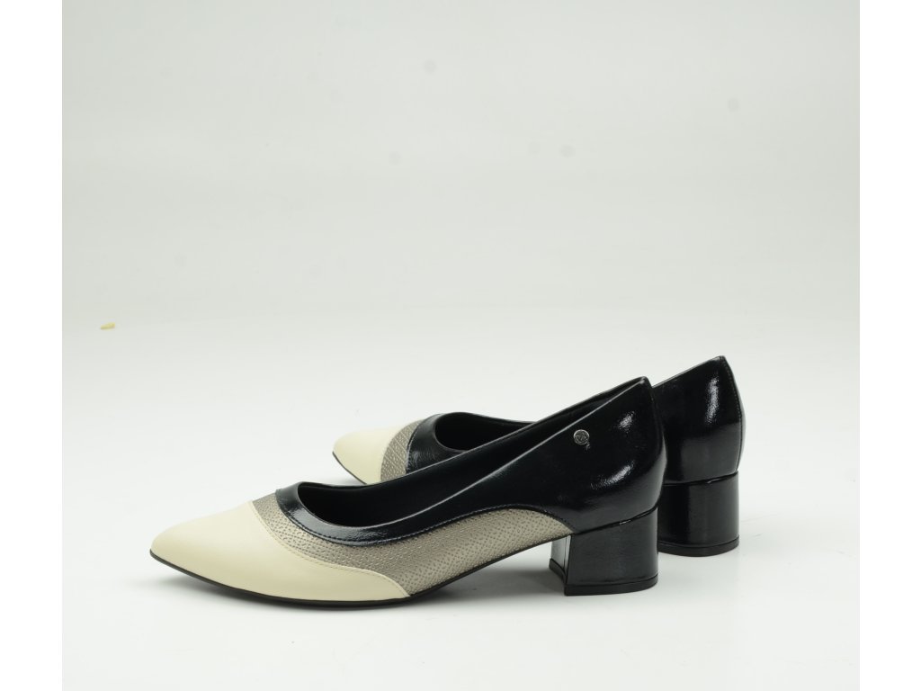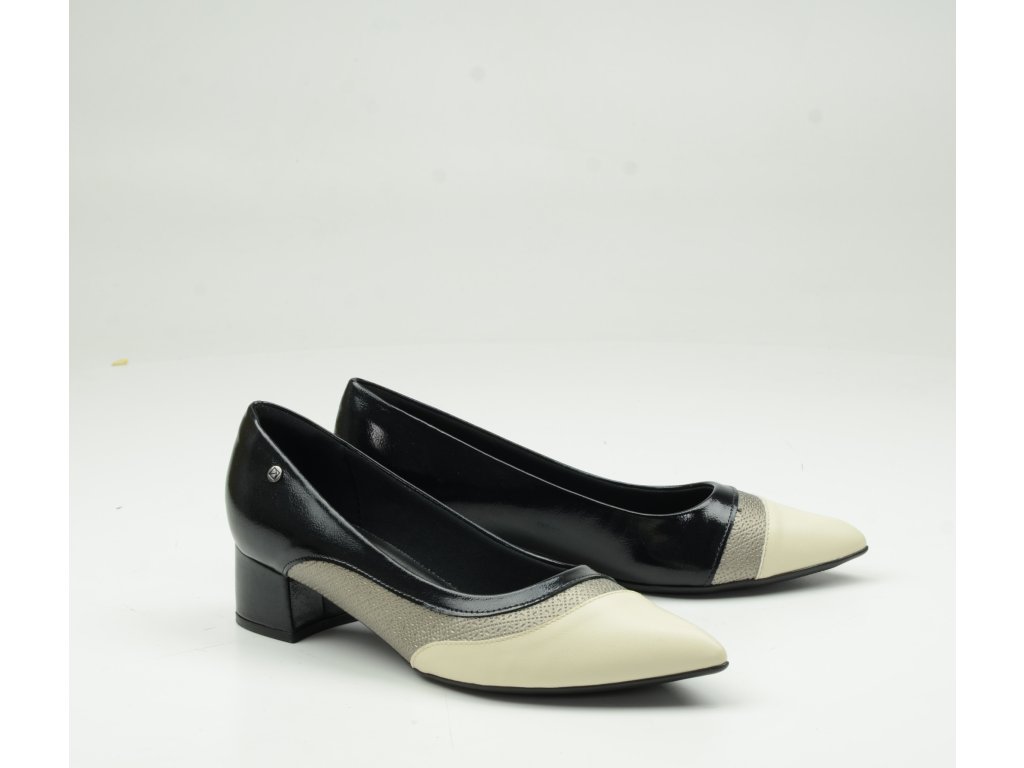 Dámské lodičky Piccadilly 739090-1 zaujmou na první pohled svou elegantní kombinací barev, která působí moderně a zároveň velmi vkusně. Kontrast černé, béžové a jemně strukturovaného detailu dodává obuvi jedinečný charakter, díky kterému skvěle doplní jak formální, tak i smart casual outfit.
