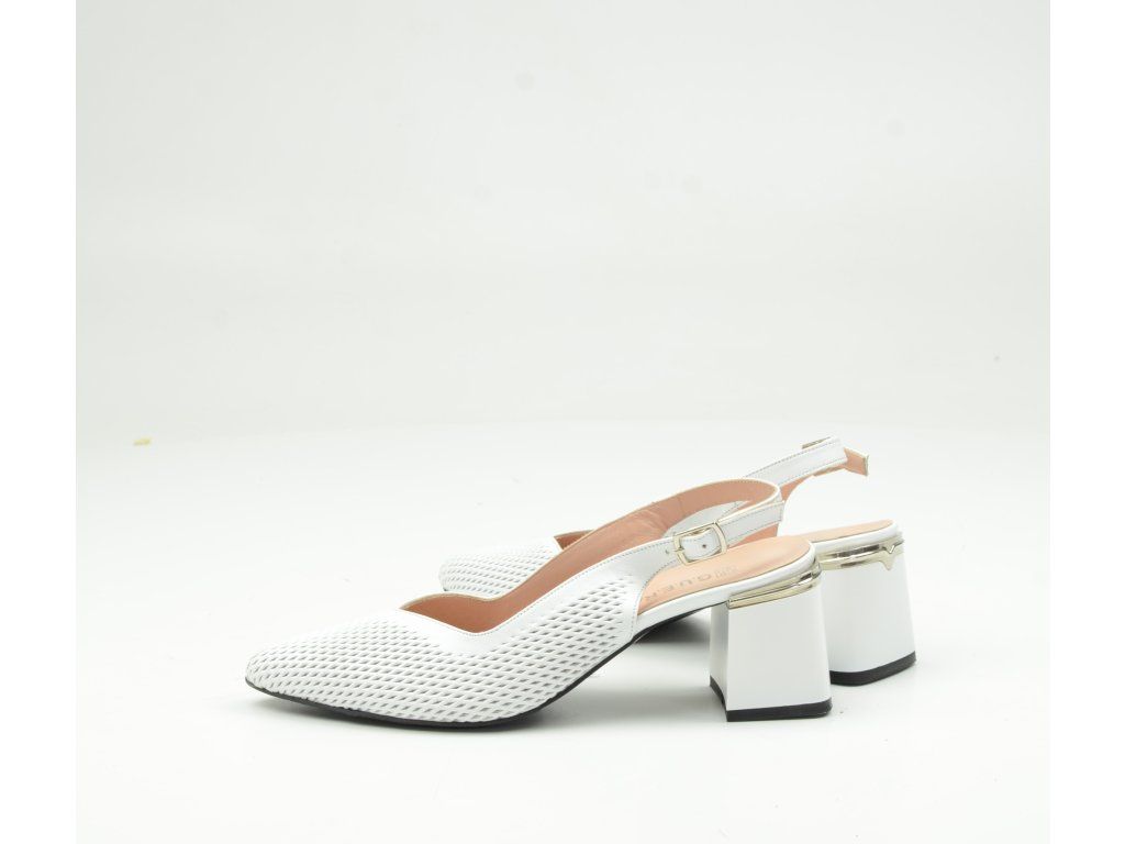 Dámské lodičky s otevřenou patou GUERO G641-4019-258 v bílé barvě jsou ideální volbou pro ženy, které hledají elegantní a zároveň pohodlnou obuv na letní sezónu. Tento model zaujme jemně perforovaným svrškem, který dodává botám lehkost, vzdušnost a moderní vzhled.