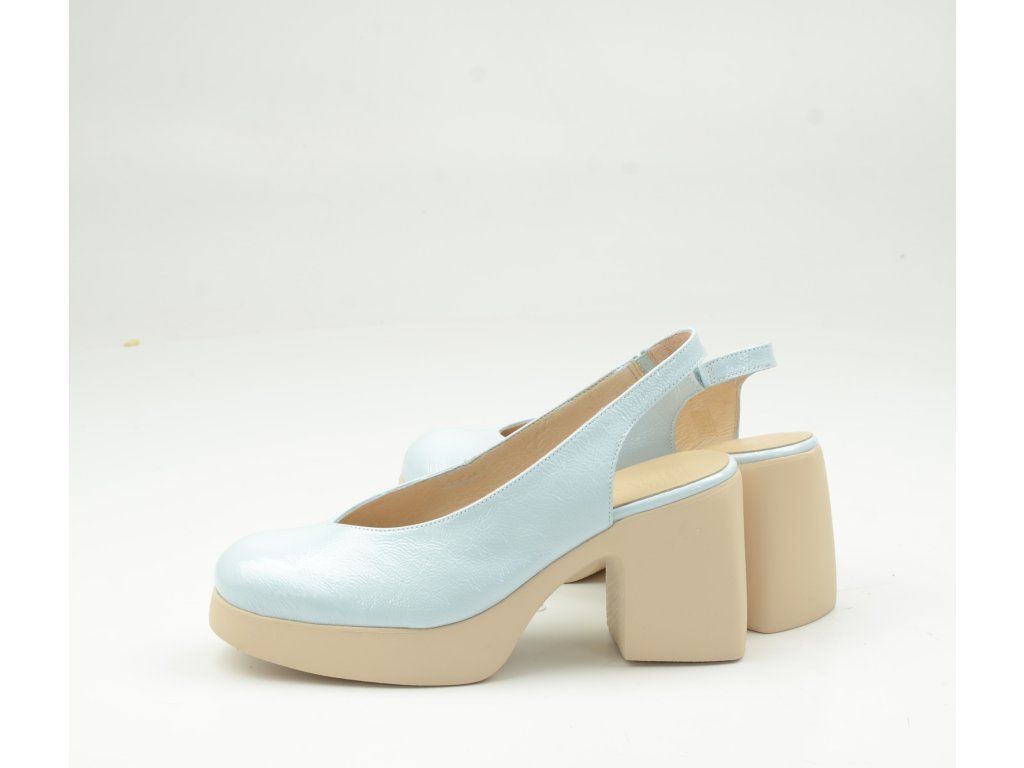 Dámské lodičky Wonders H-4990 Lack Aura představují dokonalé spojení moderní elegance, komfortu a španělského designu. Tento model v jemném světle modrém odstínu zaujme na první pohled svým lakovaným povrchem a minimalistickým, ale výrazným stylem.