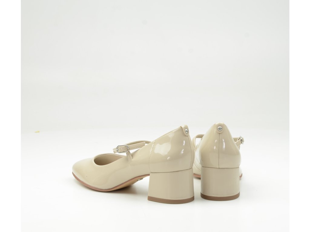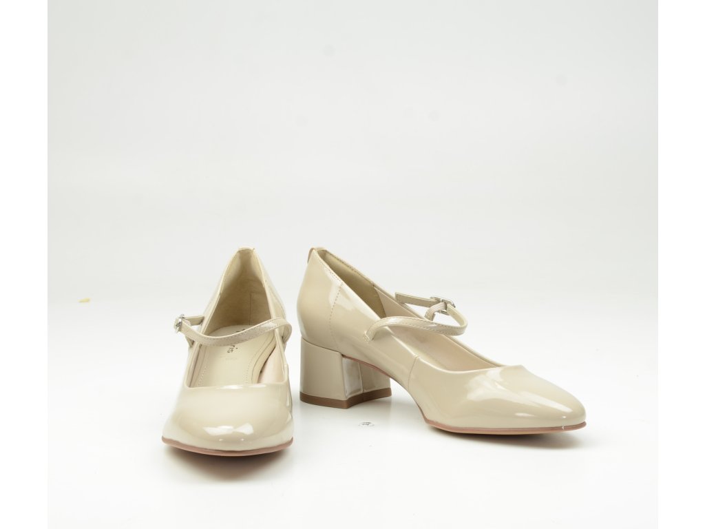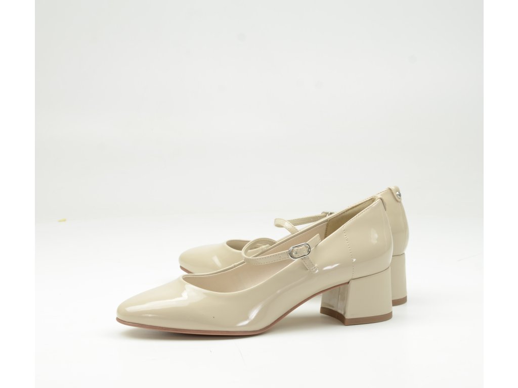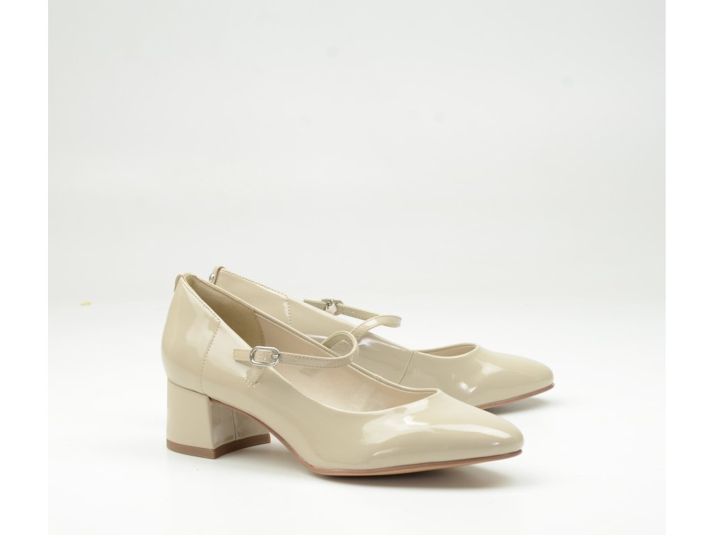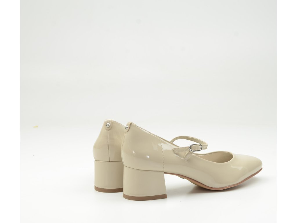 Model je vybaven páskem přes nárt s přezkou, který zajišťuje lepší stabilitu a zároveň působí velmi žensky a stylově. Středně vysoký, širší podpatek poskytuje jistotu při chůzi a pohodlí i během celodenního nošení – ideální volba do práce, na schůzky i společenské události.