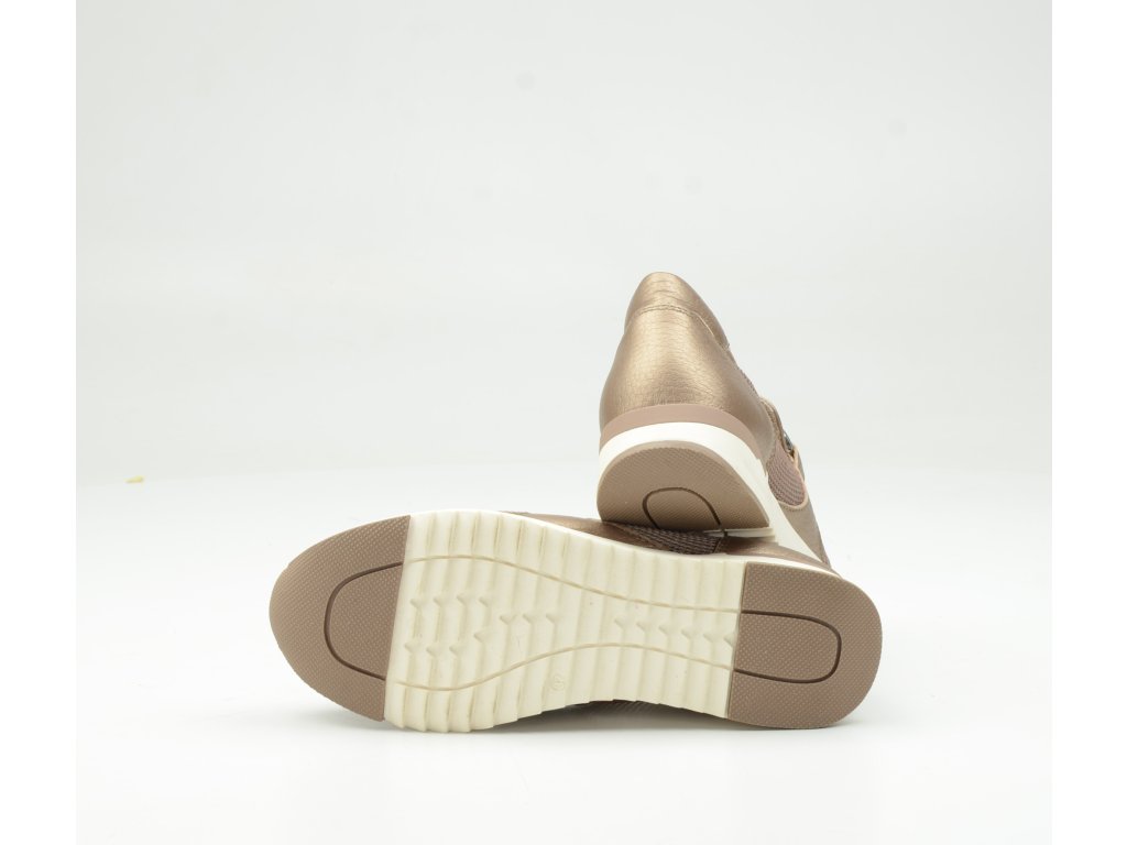 Dámská obuv Caprice 9-24536-42 904 v moderním odstínu bronce zaujme na první pohled kombinací metalického lesku a sportovně-elegantního designu. Stylový ozdobný detail na nártu dodává modelu luxusní nádech a dělá z něj výrazný, ale stále velmi dobře kombinovatelný kousek.