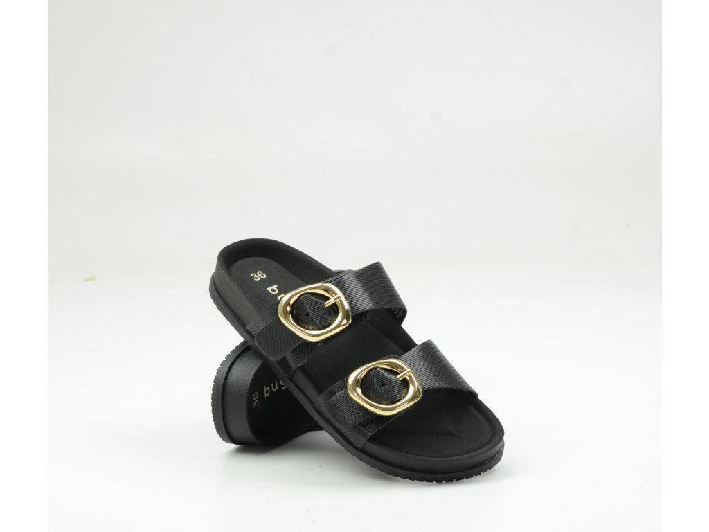Dámské pantofle Bugatti 435-AVN90-5800-1000 v černém provedení jsou perfektní volbou pro ženy, které hledají kombinaci elegance, pohodlí a moderního designu. Minimalistický vzhled doplněný výraznými zlatými přezkami dodává obuvi luxusní nádech a dělá z ní stylový doplněk pro každodenní nošení.