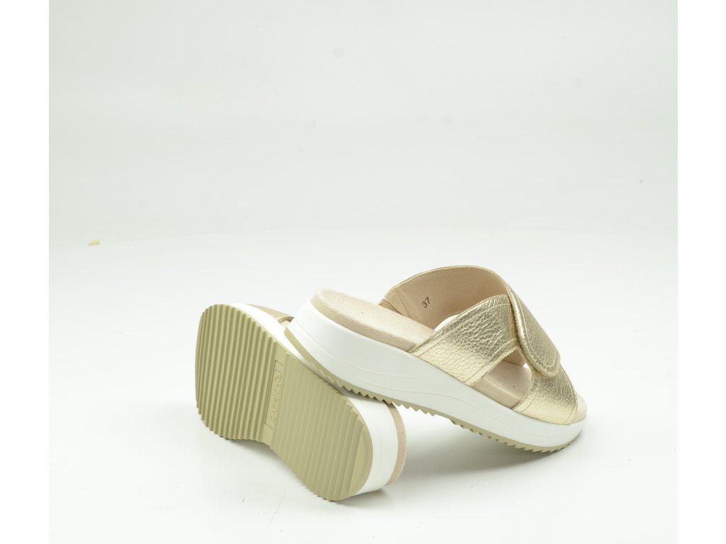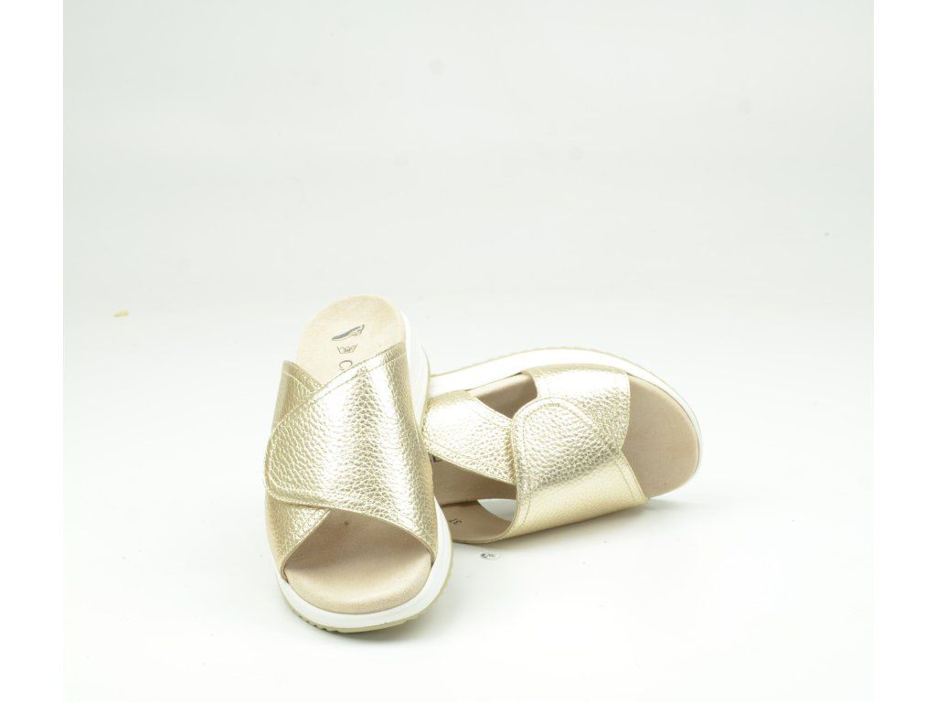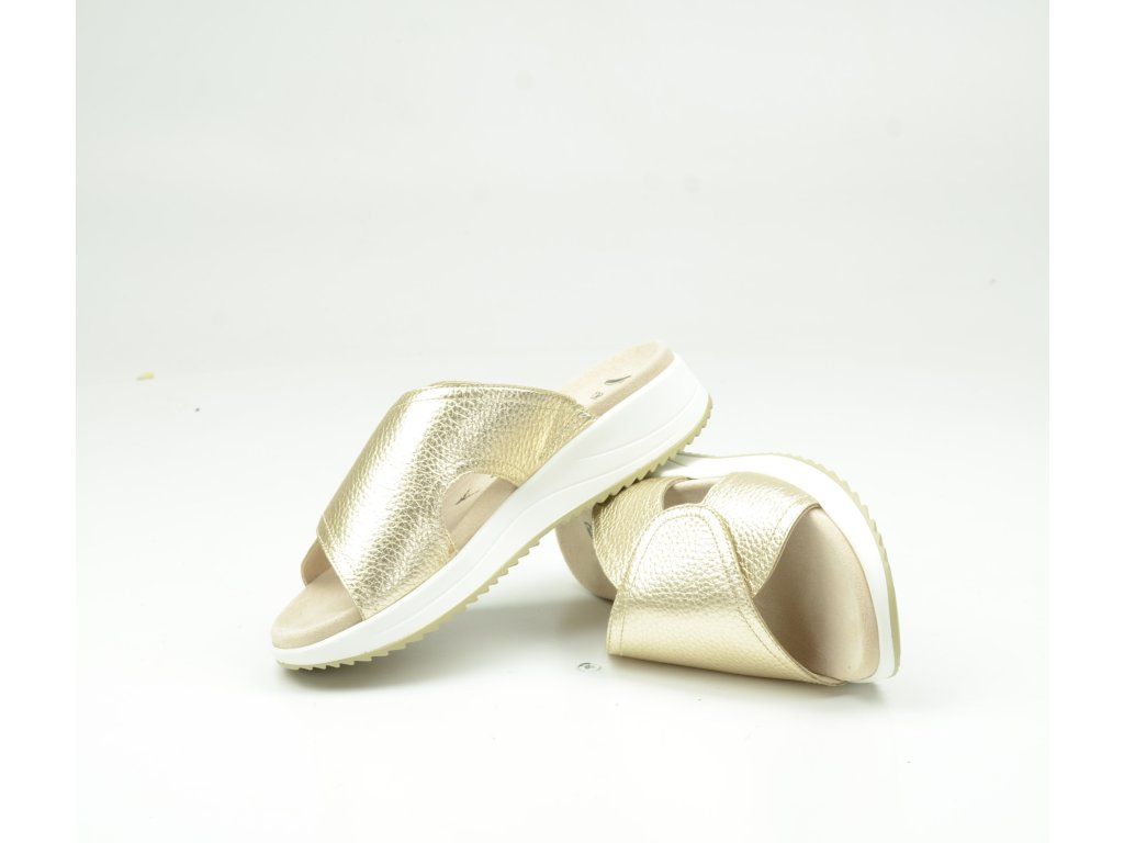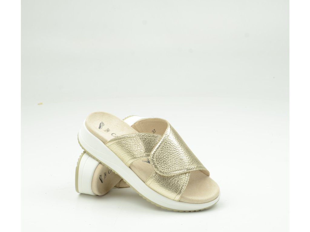 Dámské pantofle Caprice 9-9-27209-46 971 lt.gold jsou ideální volbou pro ženy, které hledají maximální pohodlí v kombinaci s moderním elegantním stylem. Zlaté metalické provedení dodává obuvi luxusní nádech a snadno oživí každý letní outfit.