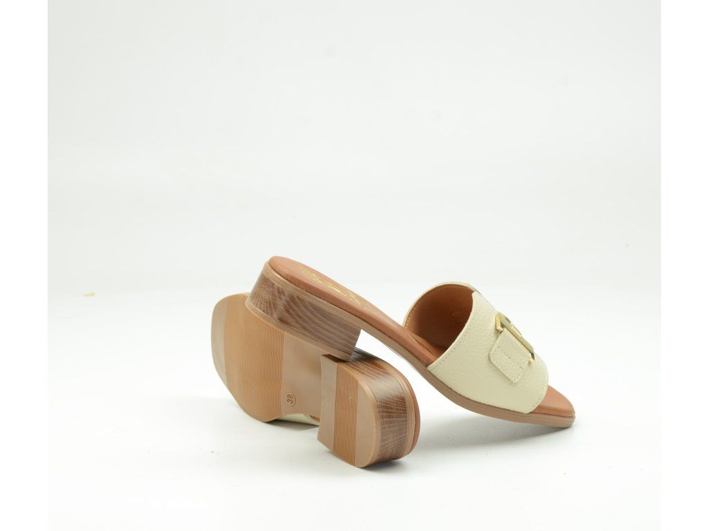 Dámské pantofle Guero 5890 Doya Hello představují dokonalé spojení elegance, pohodlí a letní lehkosti. Světlý krémový odstín v kombinaci s výraznou zlatou sponou dodává obuvi luxusní vzhled, který skvěle doplní každý letní outfit.