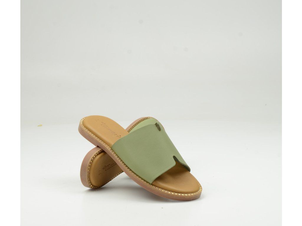 Lehké kožené pantofle Tamaris v olivové barvě – jednoduchý styl a pohodlí na každý letní den.