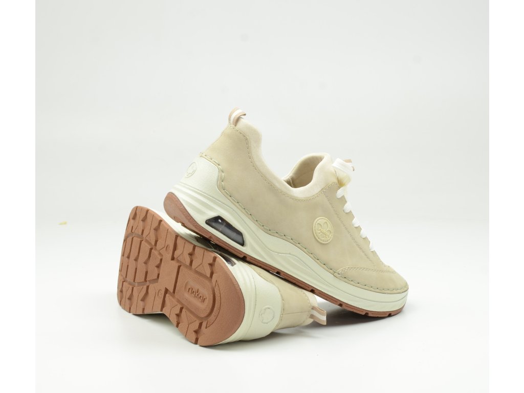 Lehké dámské tenisky Rieker v béžové barvě s technologií Antistress poskytují maximální pohodlí a styl pro každý den. 👟✨