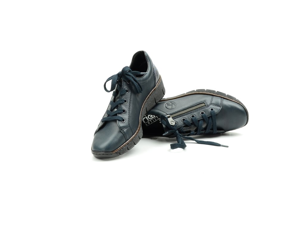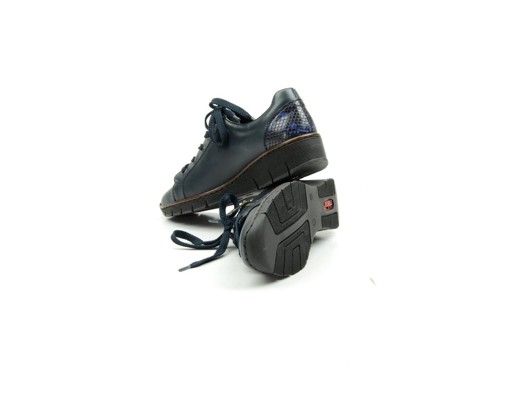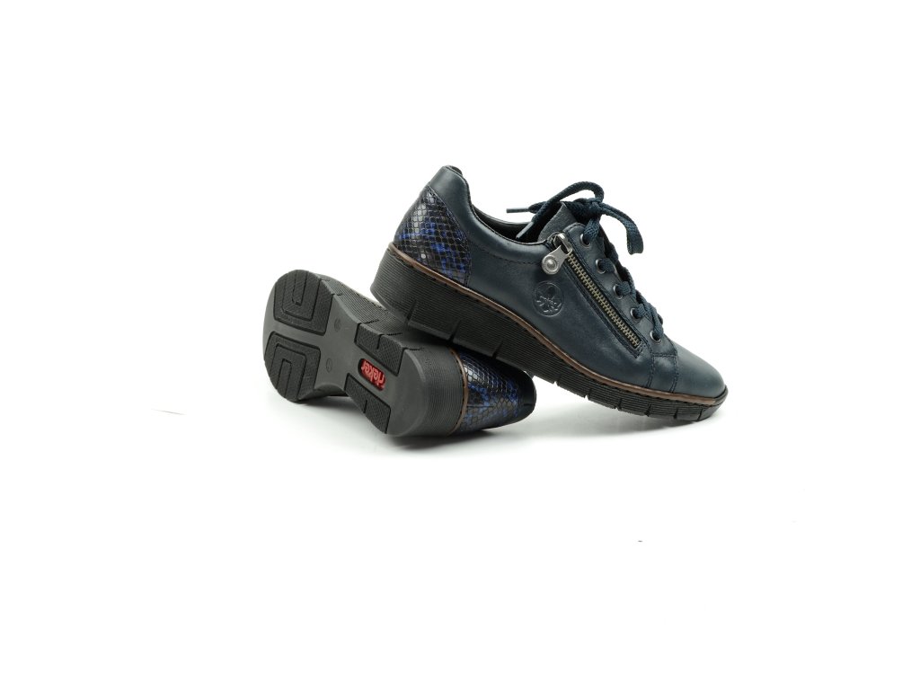 Dámské polobotky Rieker 53702-14. S těmito dámskými botami značky Rieker to bude láska na první pohled. Svršek je modré barvy, zdoben lehkým prošíváním. Z boční strany je do svršku všitý zip a těsně pod ním je vytlačeno logo značky. Přidanou hodnotu vytváří i šněrování, díky kterému si můžete nohu zpevnit tak, jak je Vám nejpohodlnější. Zadní strana boty je oživena imitací hadí kůže v tmavě modrém odstínu. Měkká stélka Vám zajišťuje pohodlné chození, ať jste kdekoliv. V těchto botách se budete cítit naprosto jedinečně. Vezměte si k nim klidně kalhoty či sukni a vyrazte do obchodu s kamarádkami.