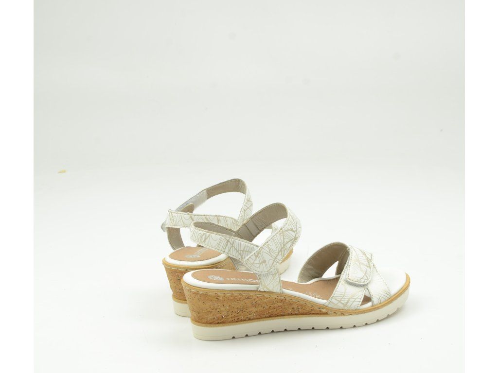 Elegantně řešené pásky s jemným vzorem krásně obepnou chodidlo a díky zapínání na suchý zip se boty snadno přizpůsobí noze. Klínový podpatek o výšce cca 5 cm opticky prodlouží siluetu a zároveň zajistí stabilitu i při celodenním nošení.
