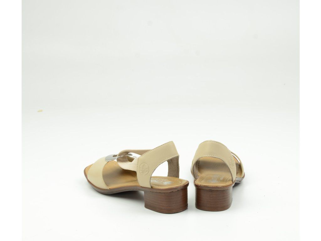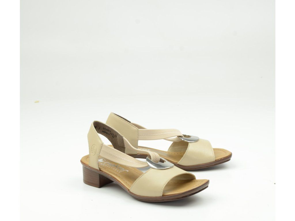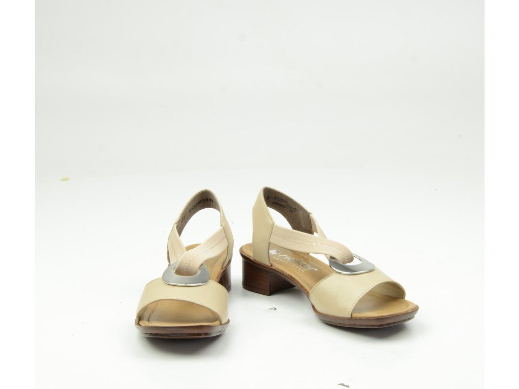 Dámské sandály Rieker 62662-62 v jemném béžovém odstínu jsou ideální volbou pro ženy, které hledají spojení elegance a maximálního pohodlí. Nadčasový design doplněný výraznou kovovou aplikací na nártu dodává botám sofistikovaný vzhled, který skvěle doplní letní outfit do města i na společenské příležitosti.