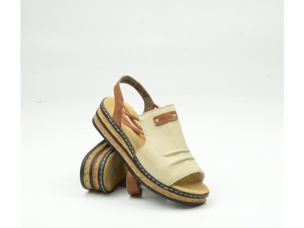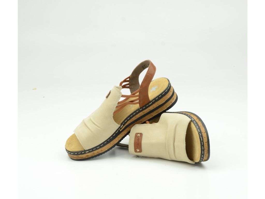 Dámské sandály Rieker 62962-60 jsou ideální volbou pro ženy, které hledají spojení komfortu, lehkosti a nadčasového stylu. Elegantní kombinace béžové a hnědé barvy působí přirozeně a skvěle se hodí k letním outfitům – od šatů až po volnočasové kalhoty.