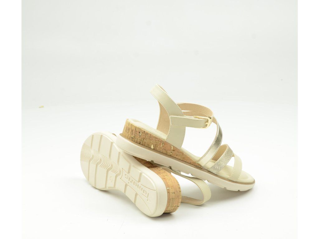 Dámské sandály Tamaris 1-28713-46 v odstínu Ivory představují dokonalé spojení elegance a pohodlí pro letní dny. Jemná krémová barva doplněná o zlaté detaily působí luxusně a zároveň snadno ladí s každým outfitem – od šatů až po ležérní kalhoty.