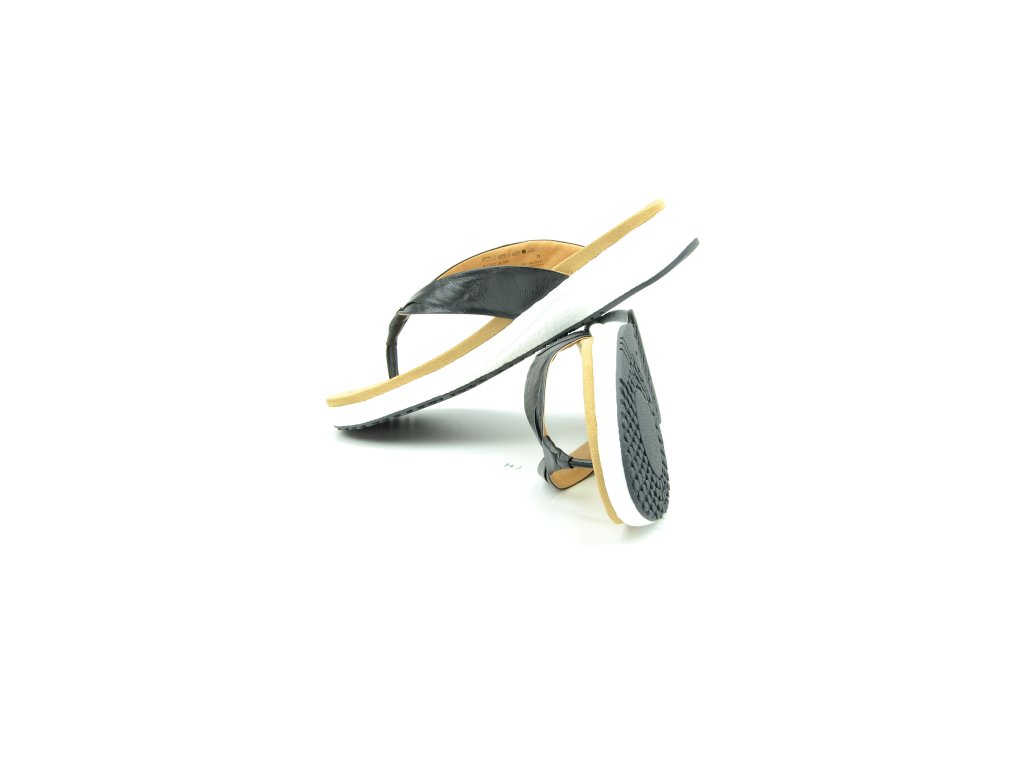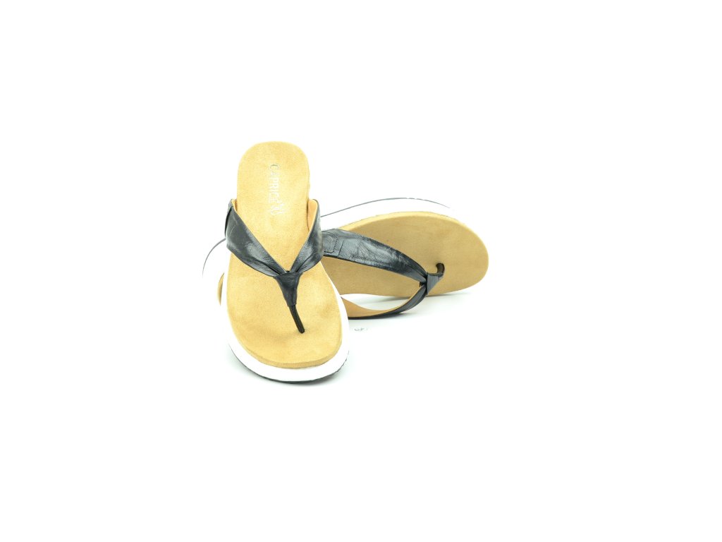 Elegantní, dámské žabky na klínklu. Vrchní materiál je hladká kůže. Vnitřek obuvi je syntetický Vyměkčená nášlapná stélka textilní. Barva u tohoto vzoru je černá. Podešev je syntetická, flexibilní. Výška podpatku je cca 3,5 cm. Obuv je v šíři G.