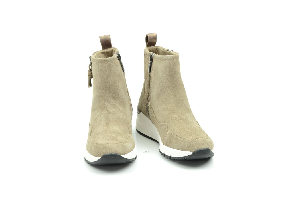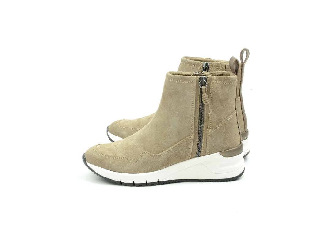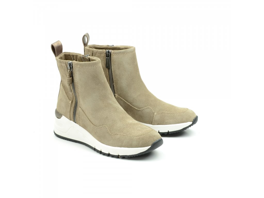 Nevšední model značky TAMARIS má kožený svršek, kontrastní podešev a černý pruh v části paty. Pro usnadnění obutí poslouží funkční zipy. Vyjímatelná a pohodlná stélka zaručí celodenní komfort. V chladných dnech jistě také oceníte hřejivé textilní zateplení. Vysoká podešev má hrubý vzorek a v nejvyšším bodě měří cca 5 cm. Můžete si v nich vyjít na procházku zimní krajinou, nebo jen tak do práce.