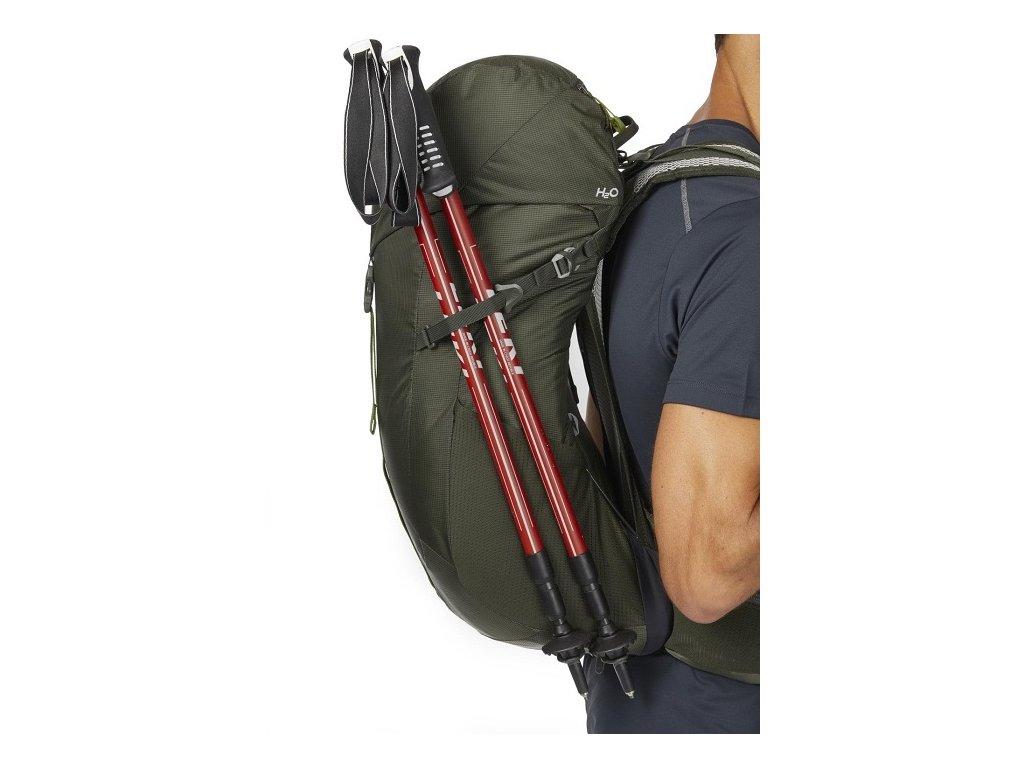 Stezka šněrující svah nad tebou ti sděluje jasnou zprávu: dnes se zapotíš. Ale i to k horám patří. Navíc tento batoh od Lowe Alpine má léty prověřenou prodyšnou konstrukci AirZone, díky které čerstvý vzduch permanentně osvěžuje záda. Horkem vysušené hrdlo zase rychle osvěžíš vodou, kterou si poneseš v lahvích v bočních kapsách nebo v hydrovaku, pro který má batoh vyhrazenou speciální kapsu. Ostatně v dalších kapsách ve víku, na čele nebo na bederním pásu najde své místo kdejaká drobnost. A kdyby tě zaskočila bouřka, schováš celý batoh pod integrovanou pláštěnku.