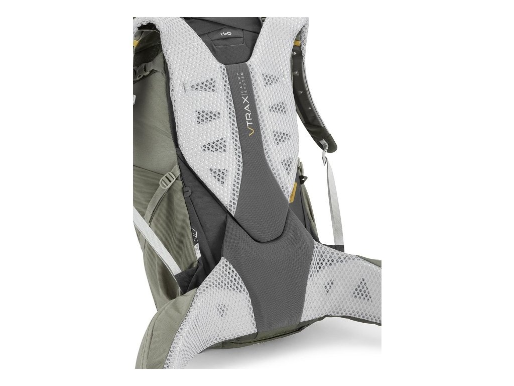 V-TRAX™ je nosný systém s nastavitelnou délkou zádového panelu pomocí suchého zipu. Společně s podpůrným bederním pásem zajišťuje plný kontakt se zády a vynikající stabilitu.