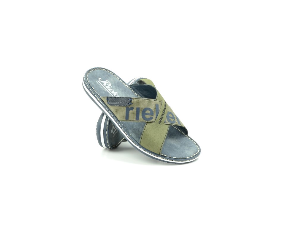 Moderní vzhled těchto nazouváků značky RIEKER zajistí, že je snadno sladíte s Vašimi letními outfity. Širší pásky hladkého a vzorovaného vzhledu jsou na nártu šikovně překříženy a ozdobeny kontrastními prvky. Měkká stélka zajistí pohodlí na každém kroku a kvalitní dvoubarevná podešev je ozdobena šitím. Tento velmi pohodlný vzor unosíte ke kraťasům do práce nebo na běžné pochůzky.