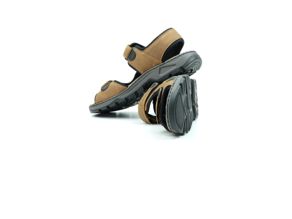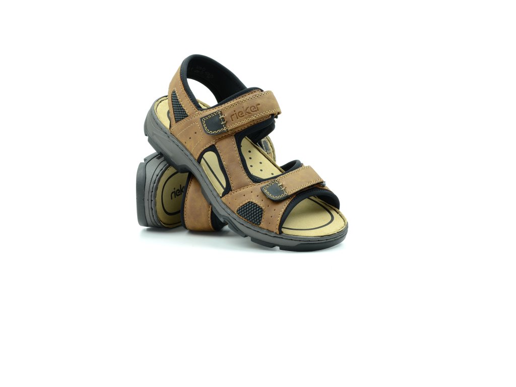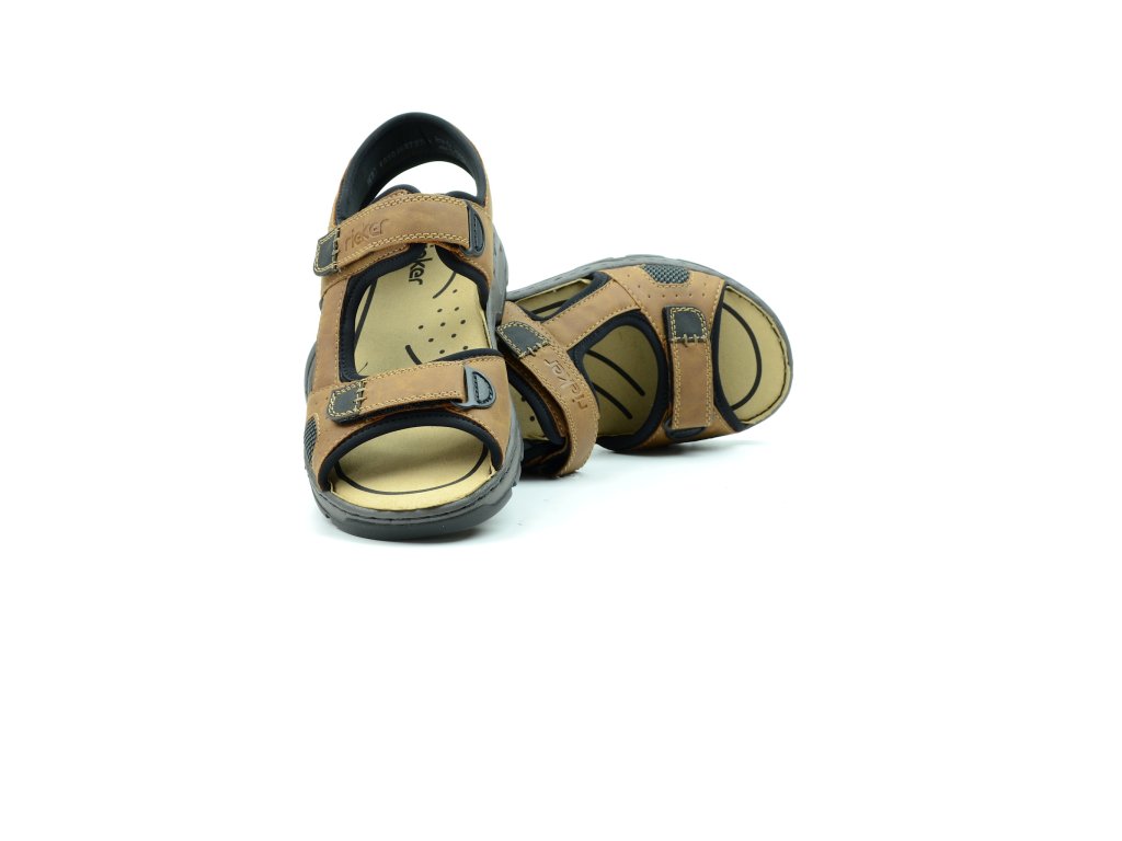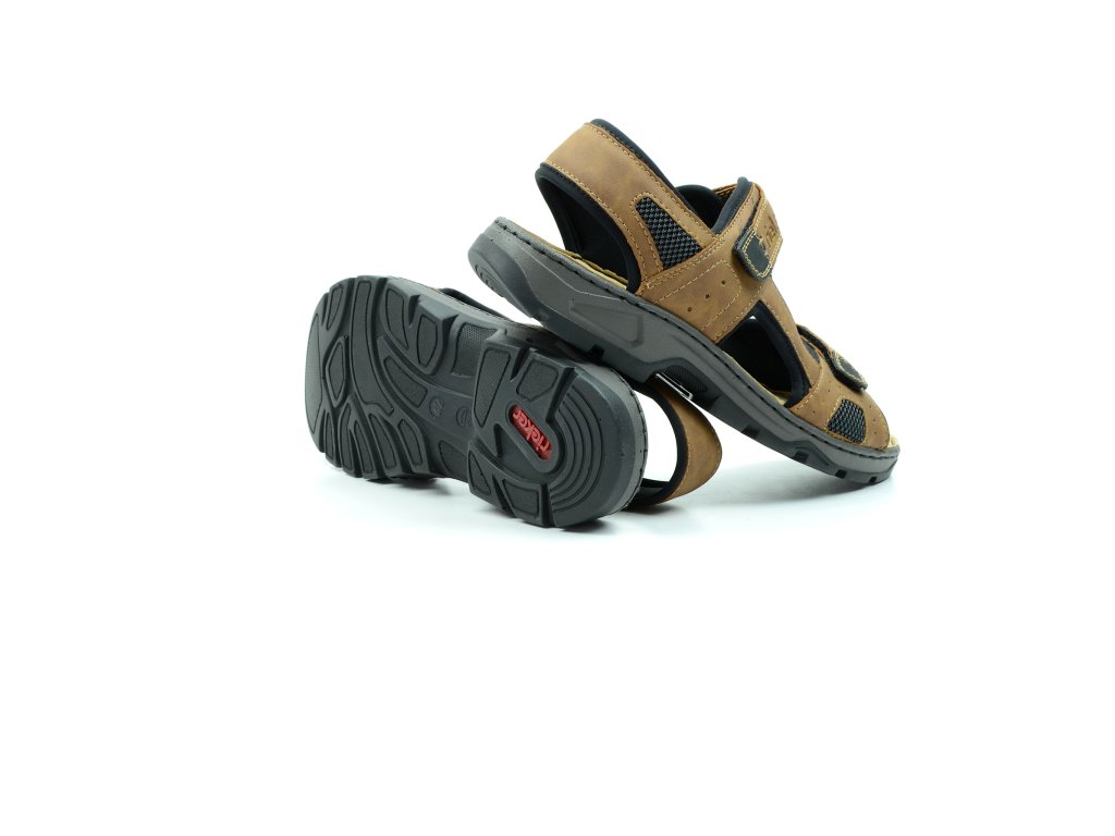 Pánské sandály Vás zajisté nadchnou svým jednoduchým zpracováním. Jsou vybaveny pro maximální komfort při nošení přezkami na suchý zip v oblasti špice a nártu. Pásky jsou ozdobeny kontrastním šitím a vytlačeným s nápisem Rieker. Podešev vysoká cca 3,5 cm je flexibilní a přizpůsobí se každému Vašemu kroku. Díky jejich prostému vzhledu je můžete využít jak na volný čas, tak do práce.