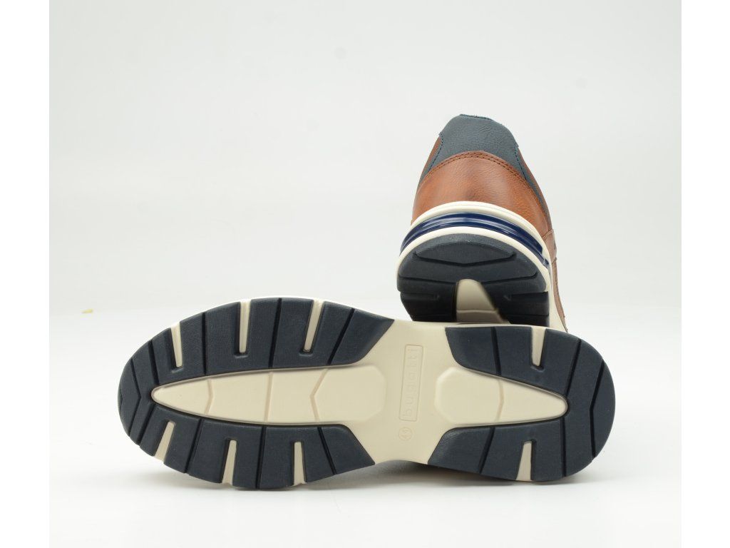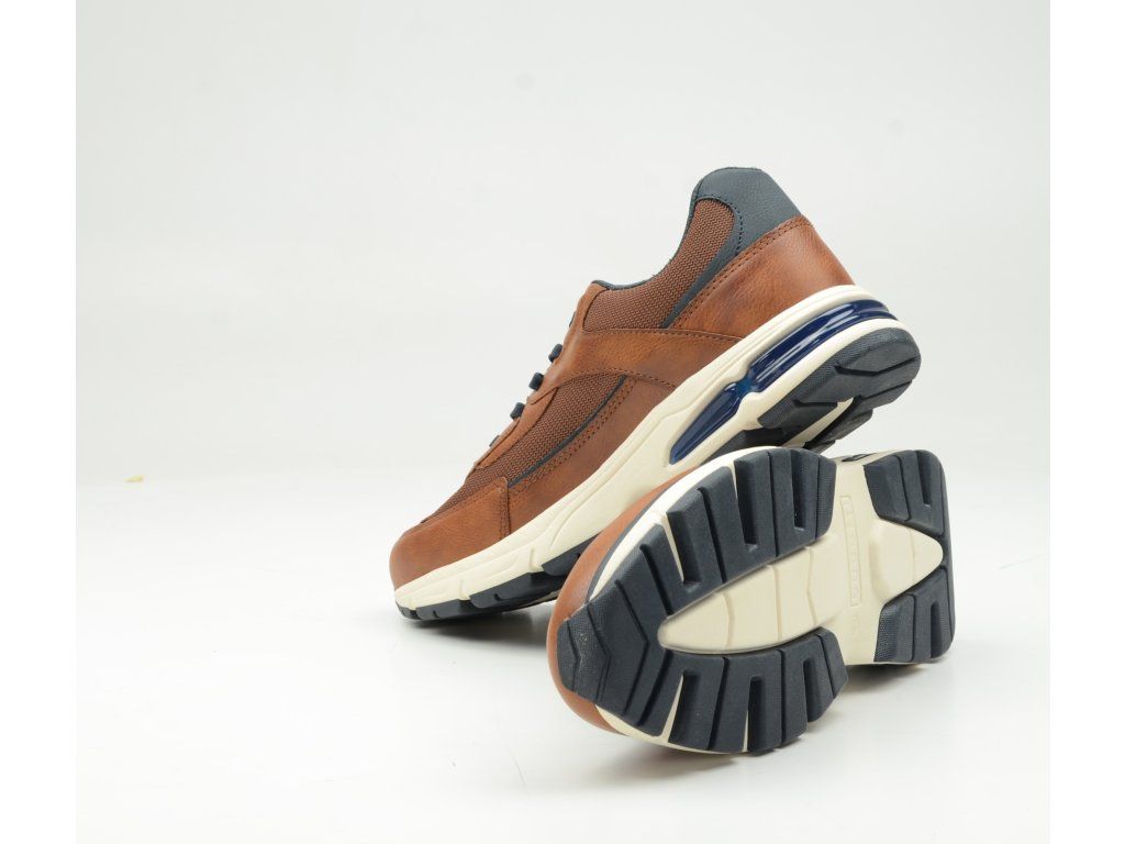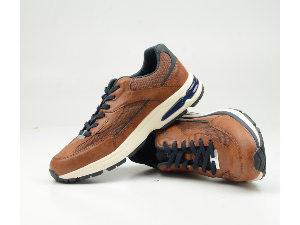 Pánské tenisky Bugatti 321-AOX03-5069-6363 v elegantní koňakové barvě přinášejí perfektní spojení sportovní lehkosti a městského stylu. Kombinace hladkých a textilních panelů s kontrastními tmavě modrými detaily dodává botám dynamický vzhled, který snadno sladíte s džínami i chino kalhotami.