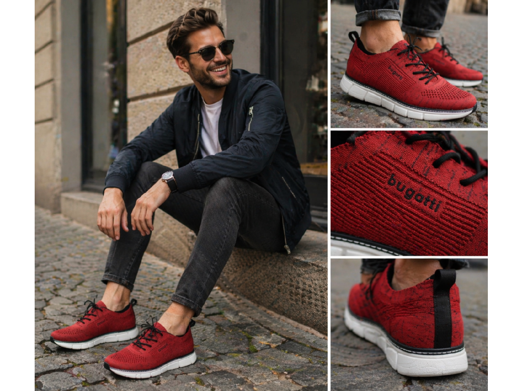 Pánské tenisky Bugatti 321-ASR01-6900-3000 v moderním červeném provedení jsou ideální volbou pro muže, kteří hledají maximální pohodlí a zároveň chtějí zaujmout výrazným stylem. Dynamický design v kombinaci s kontrastní bílou podešví vytváří svěží, sportovně-městský look, který skvěle doplní každý outfit.