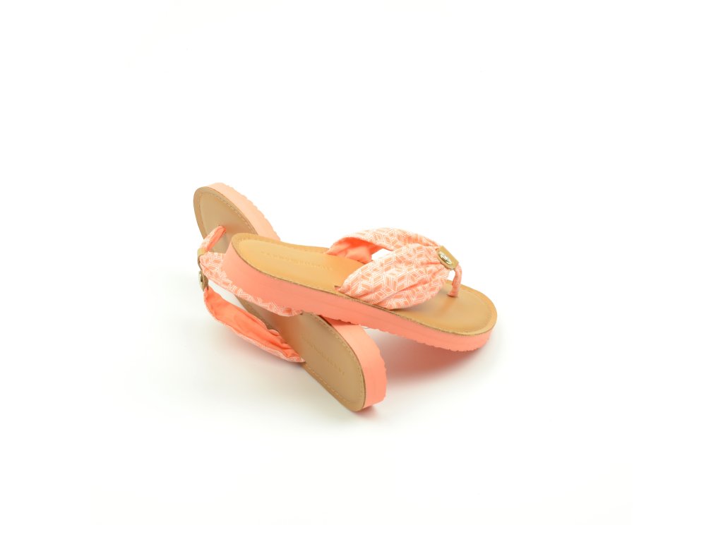 Pohodlné dámské žabky značky TOMMY HILFIGER. Oražovobílá kombinace je vhodná ke každému letnímu oblečení. Pásek mezi prsty je látkový. Podešev má zvýrazněnou klenbu chodidla. Ideální nabídka pro náročné. V těchto letních žabkách budete zajímavá.