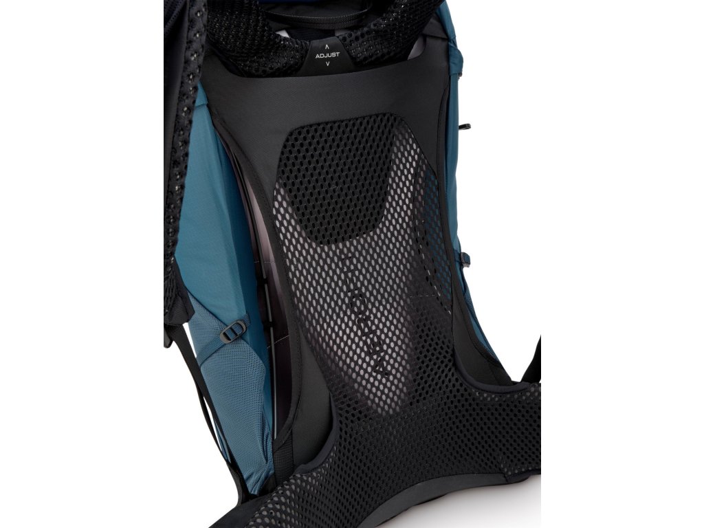 Základ tvoří nosný systém AEROFIT se síťkou pro odvětrání zad. Batoh sedí blízko těla, ale mezi zády a batohem nechá proudit vzduch. Navíc má nastavitelnou délku zad, takže si usazení doladíš přesně na sebe. Materiály jsou zvolené tak, aby batoh zvládl intenzivní používání a pobral i drsnější zacházení na stezce.