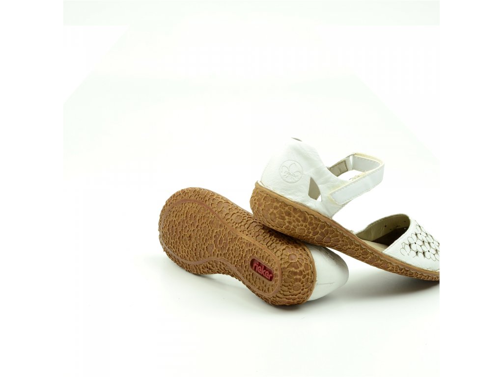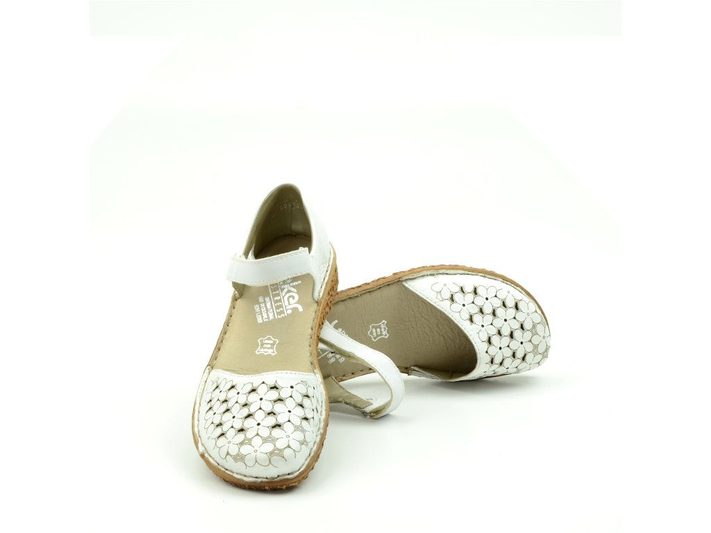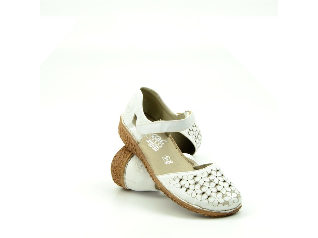 Dámské polobotky/sandály s plnou špicí Rieker po stranách otevřené Vás zaručeně nadchnou svou zdobnou špičkou. Perforace a tlačený kytičkový vzor dělají vzhled této obuvi unikátním. Pro snadné a dokonalé přizpůsobení obuvi dle Vašich požadavků slouží pásek na suchý zip. Tyto polobotky budou skvěle vypadat jak se sukní, tak i s kalhotami. Technologie:Antistress – podešev je díky této technologii lehká, flexibilní, absorbuje nárazy při došlapu