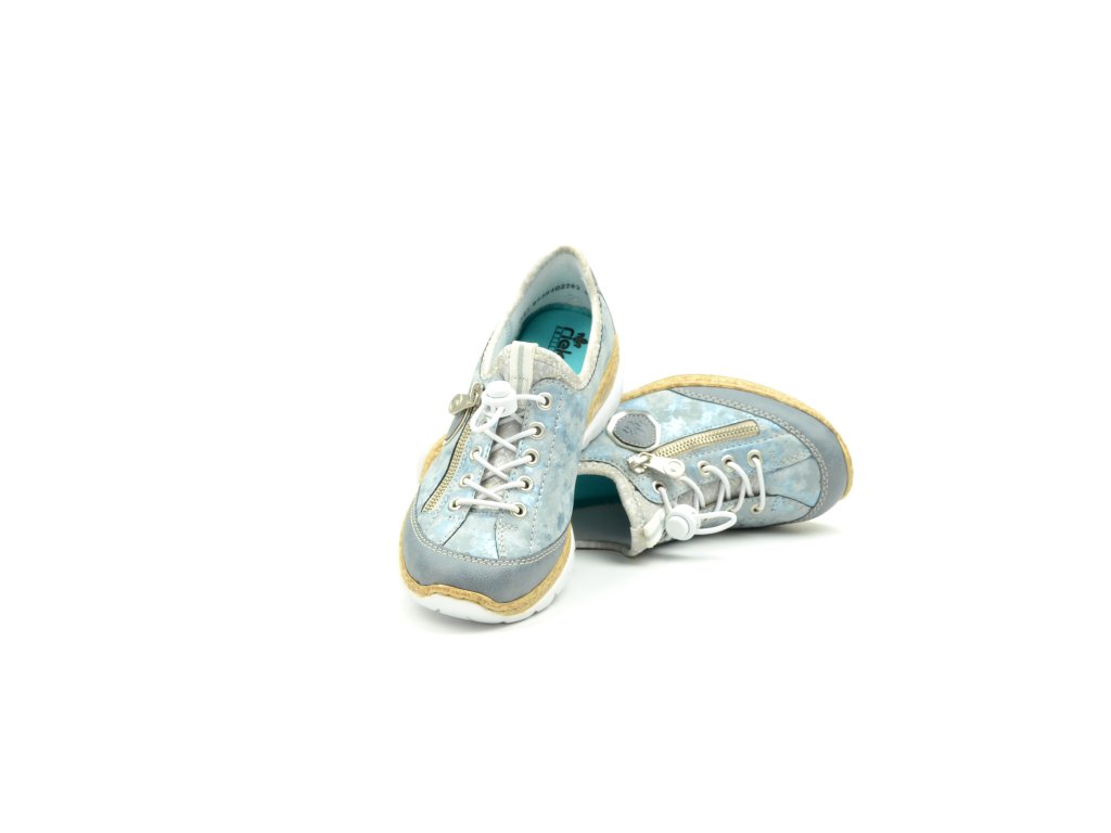 Pohodlný střih značky Rieker. Svršek ekologická kůže a látka. Komfort nošení zvyšuje vložka z textilního materiálu. Podešev - kvalitní syntetický materiál. U bot použito technologie Memosoft. Pohodlná nabídka pro každodenní nošení.