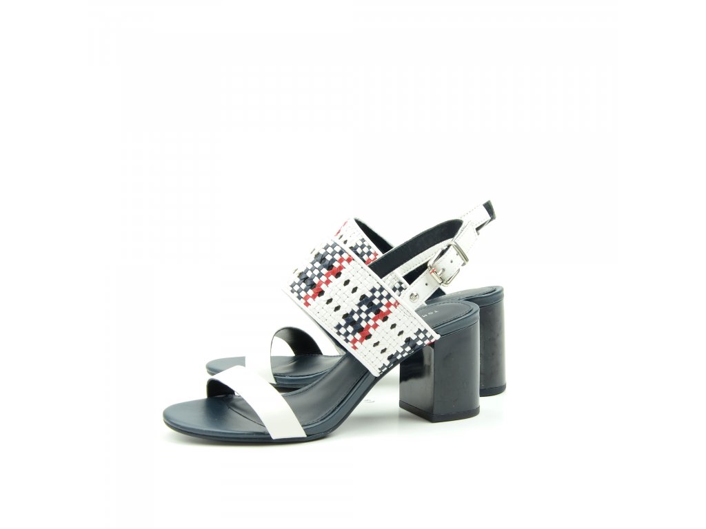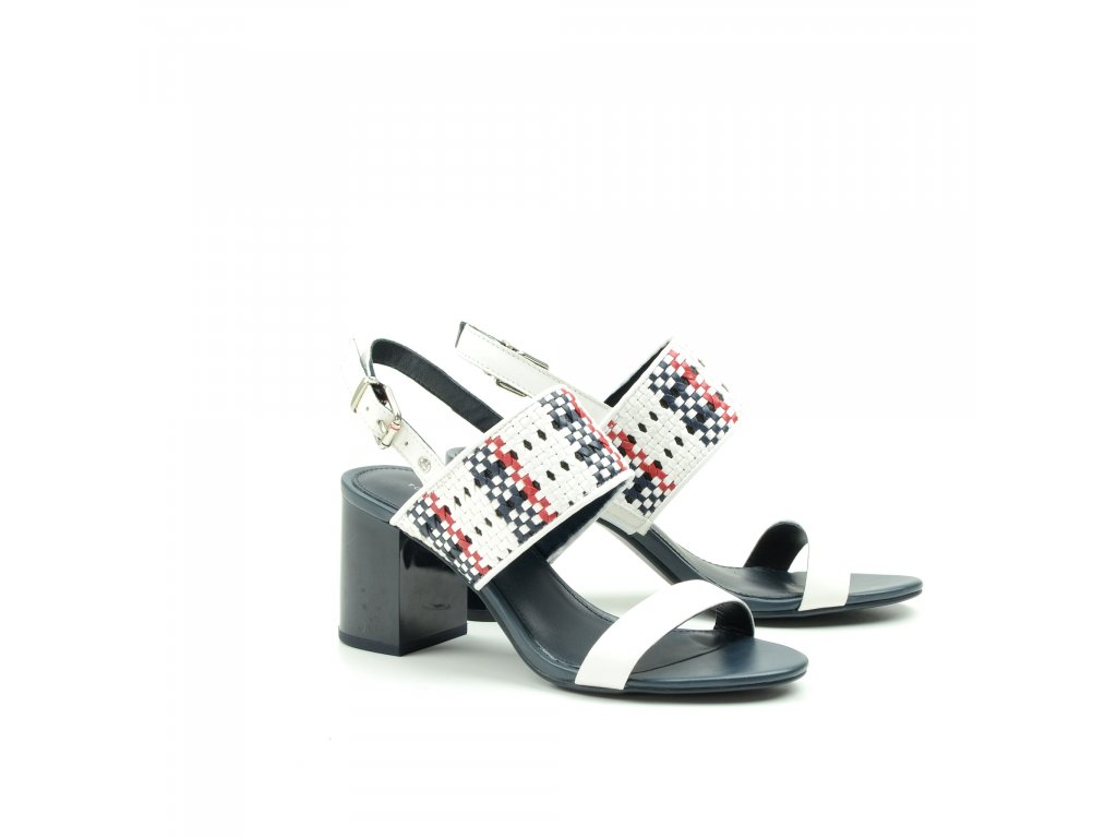 Dámské sandály Tommy Hilfiger na podpatku. Velmi moderní, pohodlný a nadčasový model, který je doplněn zdobnými prvky - barvami světoznámé značky. Pásek připevní vaši nohu v pohodlí. Takové sandály v tomto létě musí mít každá.